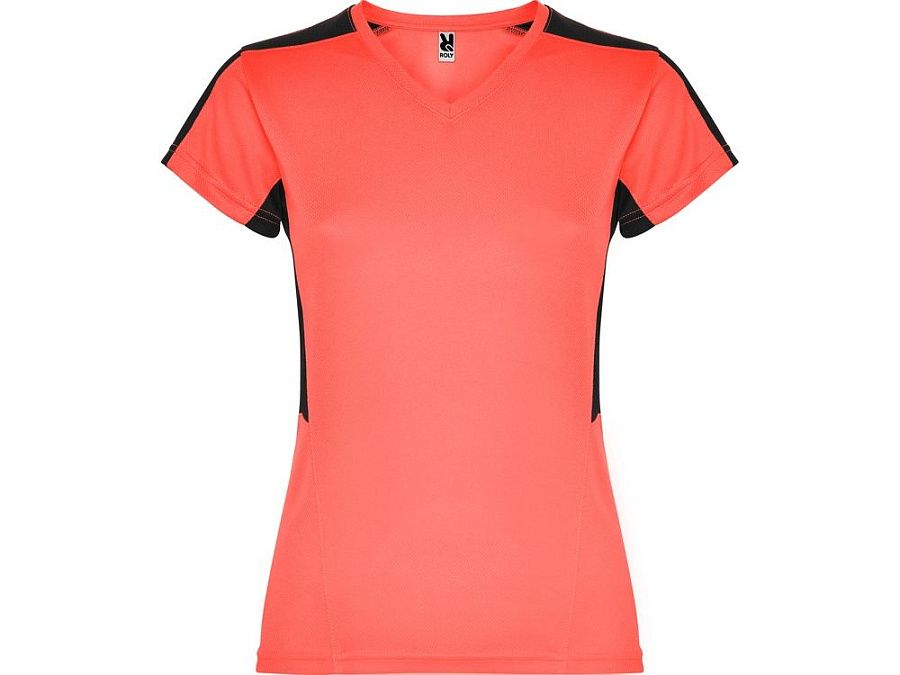 Женская футболка с коротким рукавом. V-образная горловина. Комбинация из 2 полотен контрастного цвета: структурное полотно на полочке и дышащая 3D сетка на плечах и боках.