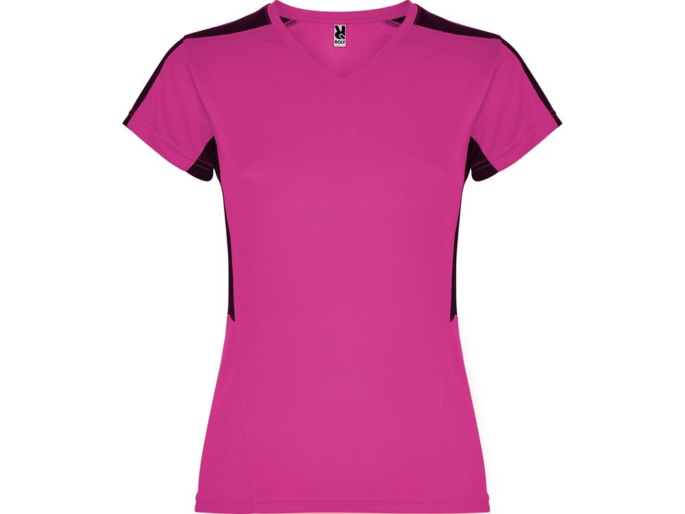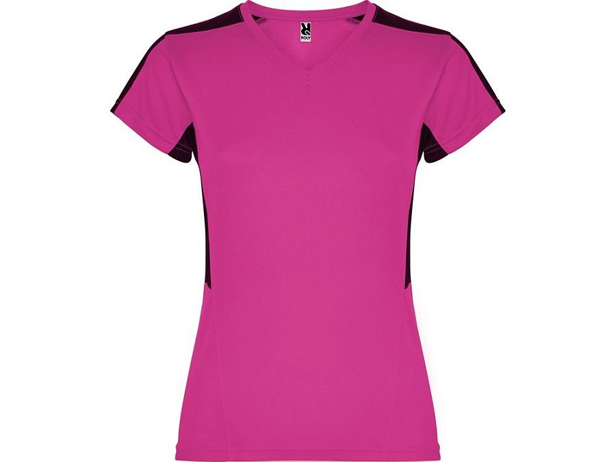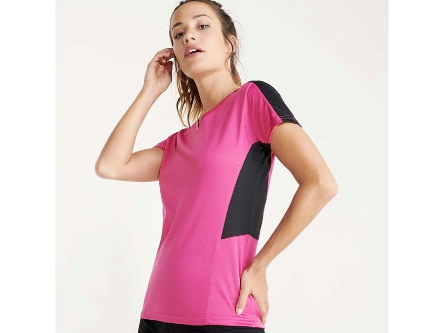 Женская футболка с коротким рукавом. V-образная горловина. Комбинация из 2 полотен контрастного цвета: структурное полотно на полочке и дышащая 3D сетка на плечах и боках.