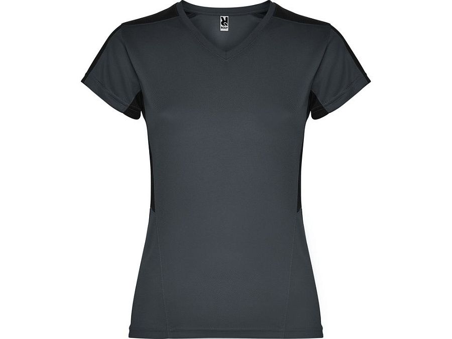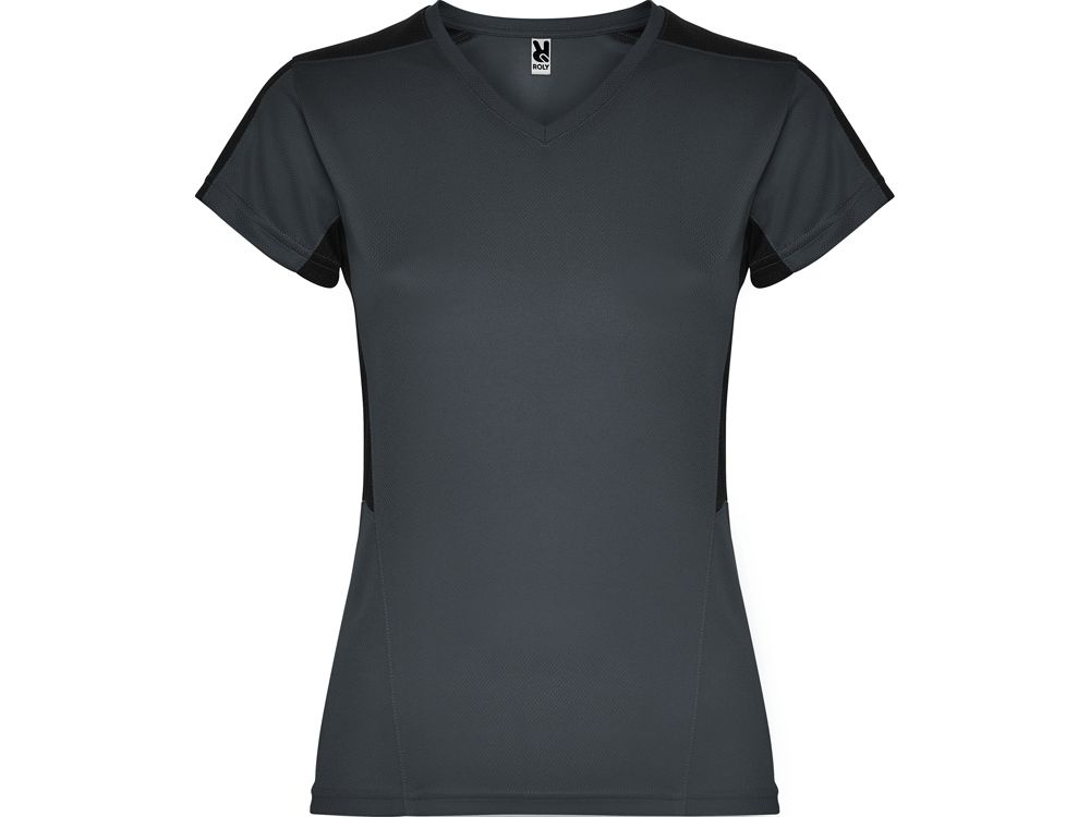 Женская футболка с коротким рукавом. V-образная горловина. Комбинация из 2 полотен контрастного цвета: структурное полотно на полочке и дышащая 3D сетка на плечах и боках.