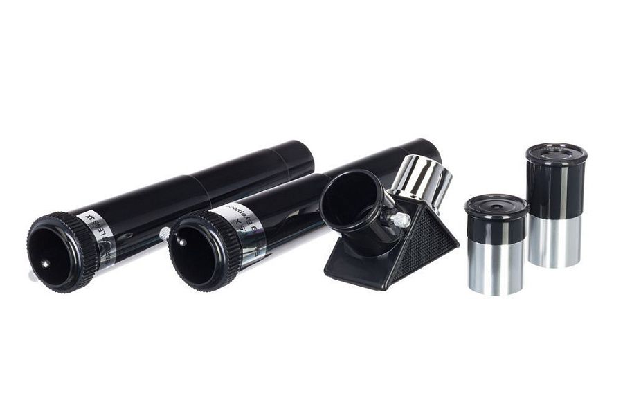 • Окуляры в комплекте: H6 мм (50х), H20 мм (15х), оборачивающий окуляр 1,5х; линза Барлоу 3х