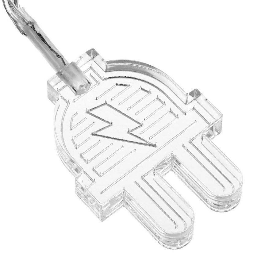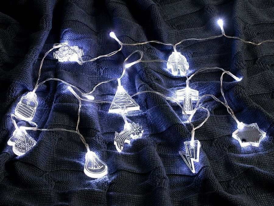 Гирлянда состоит из 20 светодиодов с холодным светом и 10 акриловых фигурок.