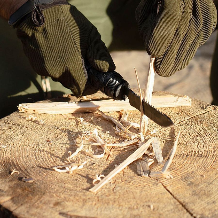 Основное предназначение модели — использование в экстремальных условиях для выживания на природе. Также изделие подойдет для пикника или дачного отдыха: чтобы нарубить веток, разжечь костер или разделать рыбу. Благодаря компактному размеру инструмент удобно переносить в туристическом рюкзаке или хранить в багажнике автомобиля.