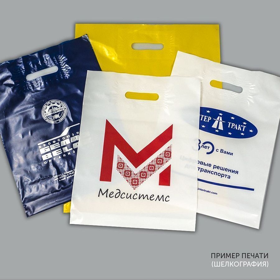 Пакет с прорубными ручками Материал: ПВД (полиэтилен высокого давления) Плотность 70 мкм