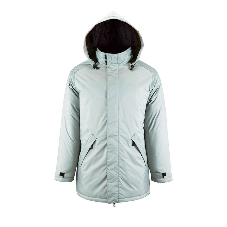 Куртка-парка унисекс на стеганой подкладке ROBYN 170 Основная ткань «оксфорд»: 100% полиэстер с водоотталкивающей пропиткой Стеганая подкладка: 100% полиэстер Утеплитель: 100% полиэстер, 170 г м2 Температурный режим определяется в зависимости от индивидуальных особенностей человека. Куртка на тонком утеплителе рассчитана на евро-зиму (от 0 до -10 С) Стильная теплая парка унисекс прямого кроя станет необходимой в промозглое осенне-зимнее время года. Благодаря пропитке ПВХ - (PVC) поливинилхлорид, ткань полностью прорезинена внутри, что делает ее водонепроницаемой и формоустойчивой. Куртка на застежке-молнии с двумя пуллерами для удобства открытия и планкой на скрытых кнопках надежно убережет от попадания ветра и влаги. Внутренняя планка на верхней части куртки обезопасит от прищемления молнией при закрытии. Высокий воротник- стойка (7 см) с внутренней стороны отделан флисом для мягкости и комфорта, а снаружи прячет в себя капюшон на кулиске с резинкой и стопером. Капюшон без утеплителя всегда можно легко достать и разложить, если погода резко испортится, а потом также убрать. Длинные рукава с утеплителем внутри и на застежке-липучке помогут сохранить тепло. 2 внешних кармана на молнии и один внутренний на застежке-липучке уберегут небольшие предметы от намокания. Изнутри на стеганной подкладке внизу имеется технологический карман для удобства персонализации. Упакована куртка в прозрачный фирменный пластиковый пакет Sol's.