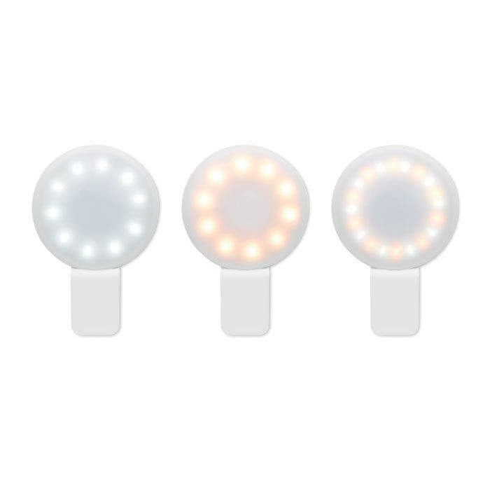 Портативный фонарь для селфи 3 см из пластика ABS с 20 светодиодными лампочками и регулируемым светом на 3 различных уровня яркости. Аккумулятор 100 мАч, перезаряжаемый через USB.