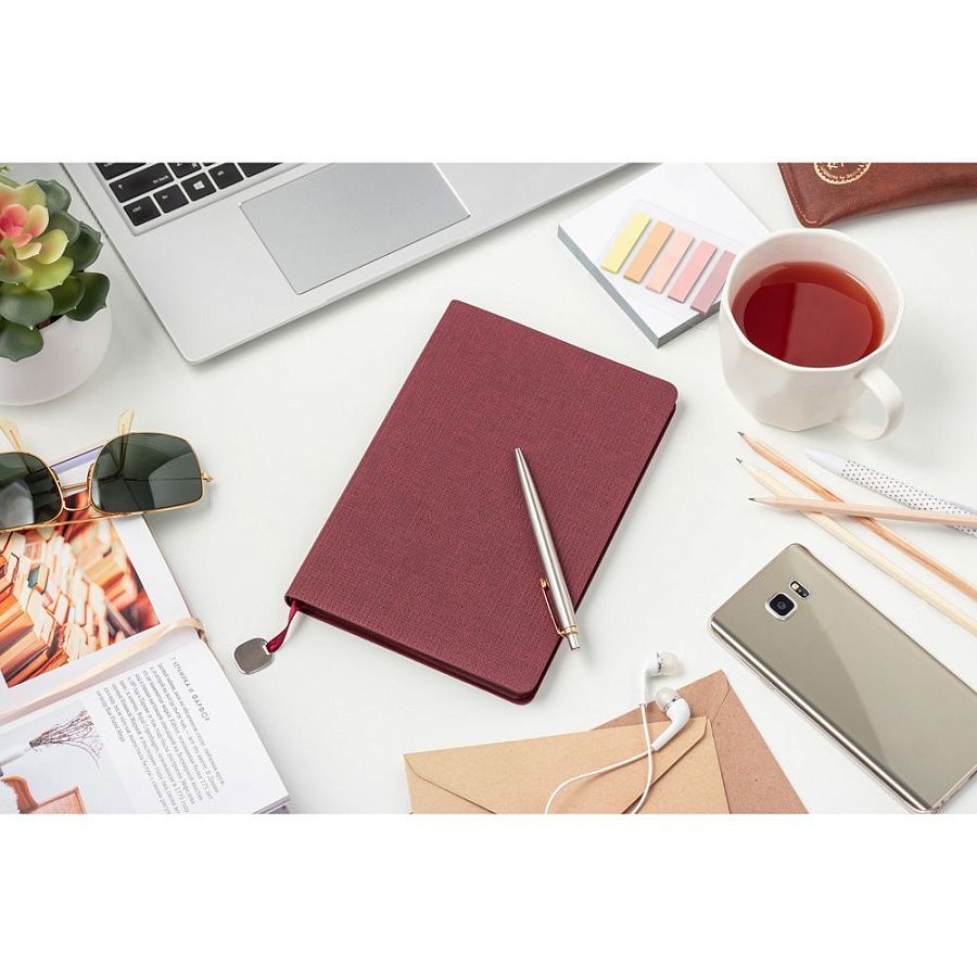 • Ежедневник в гибкой обложке. Материал Galo имеет фактуру переплета шерстяной ткани с крупным неоднородным плетением. Не блестит.