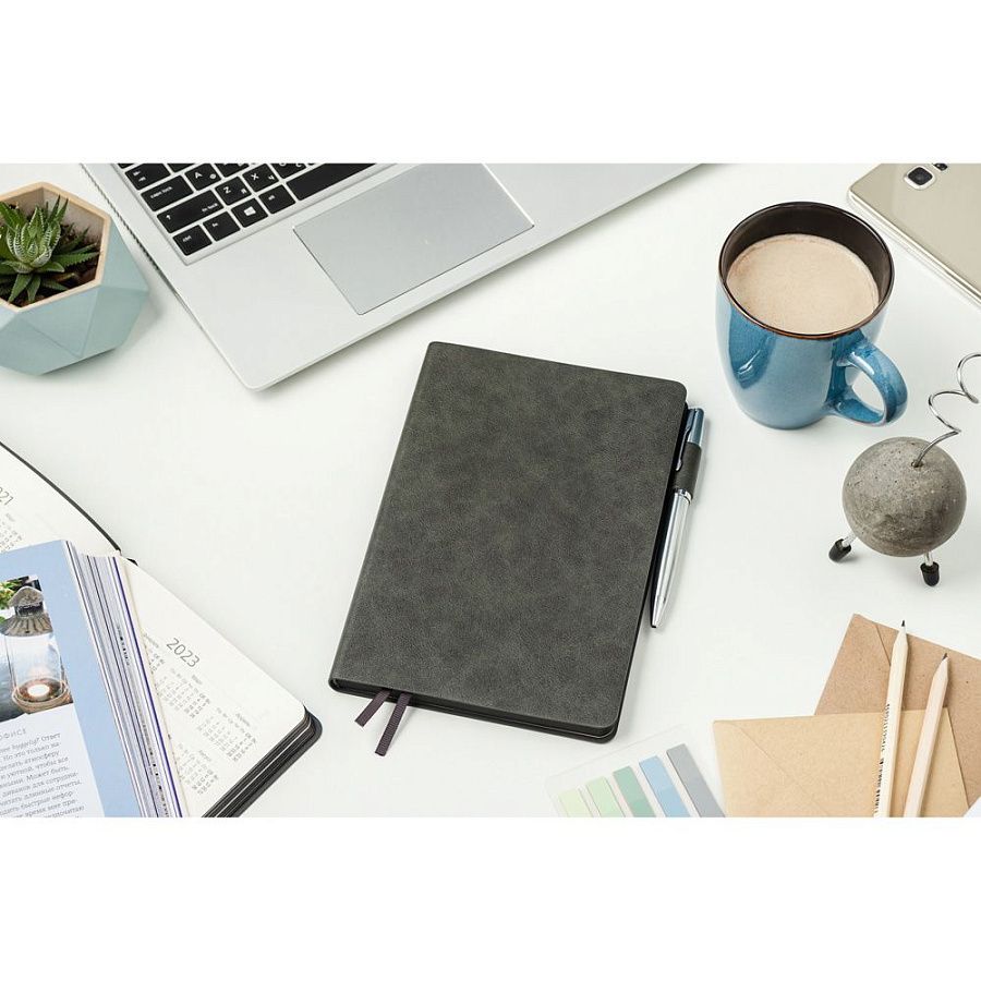 Ежедневник Flexy Tenero Suede A5, серый, недатированный, в гибкой обложке с петлей для ручки