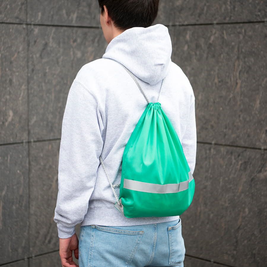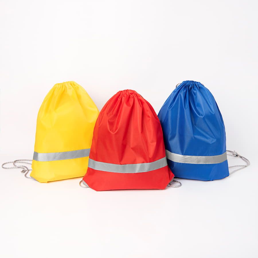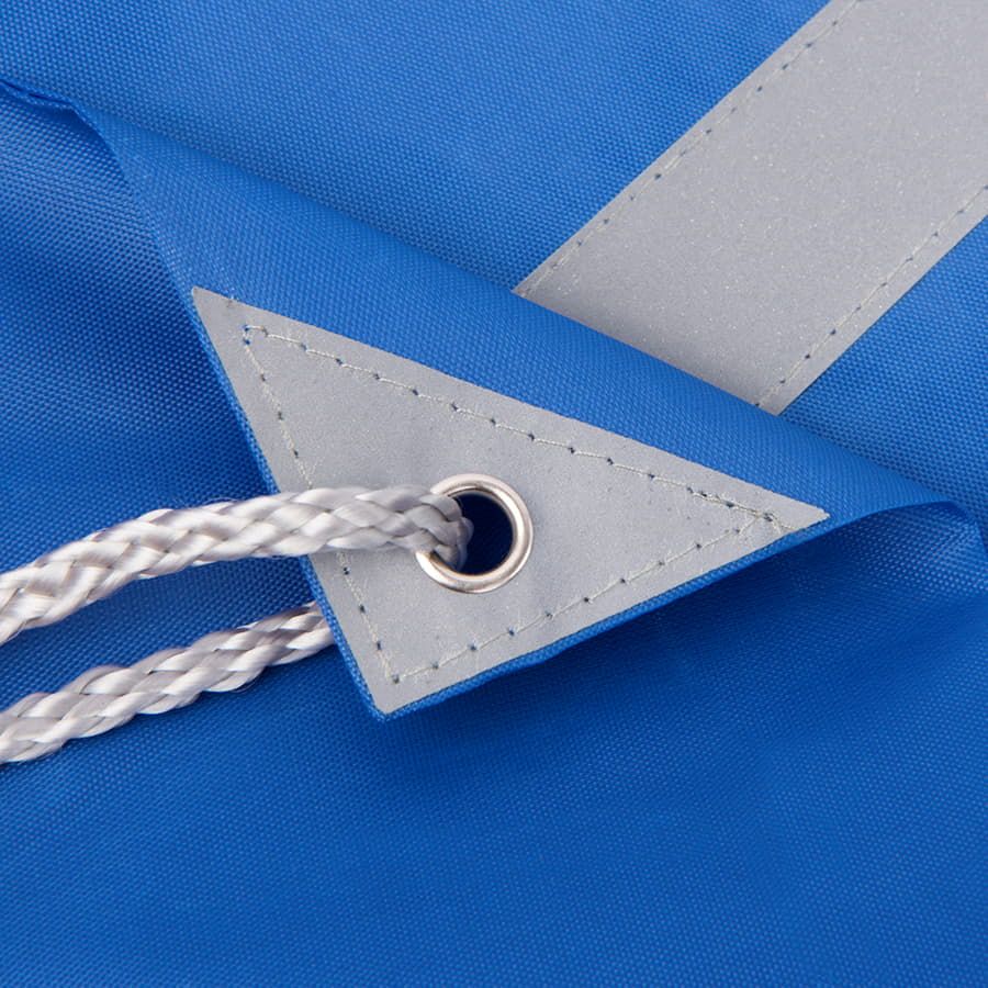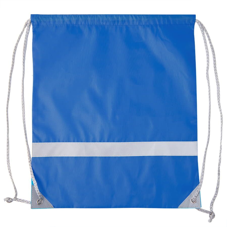 Просто и безопасно! Рюкзак-мешок RAY из полиэстера 210Dсо светоотражающей полосой спереди, светоотражающими уголками,усиленными металлическими люверсамиЛегко и просто затягивается по верхней части серыми шнурами.Синий цвет близкий к Pantone 3506C