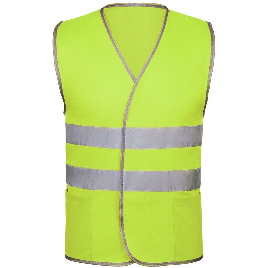 Светоотражающий жилет с застежками-липучками и двумя карманами.