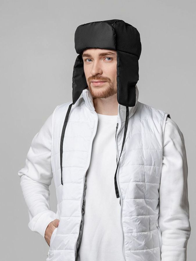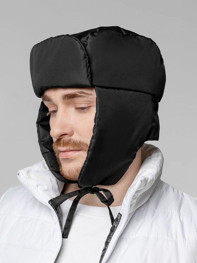 Теплая шапка-ушанка с наполнителем из синтепона и подкладкой из мягкого флиса.