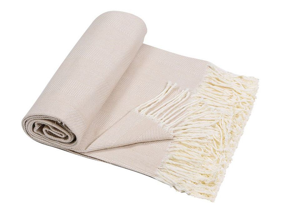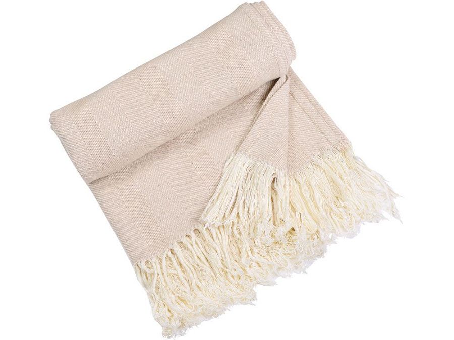 Плотный плед из натурального хлопка с бахромой по бокам. Можно использовать как одеяло или как покрывало для украшения интерьера.