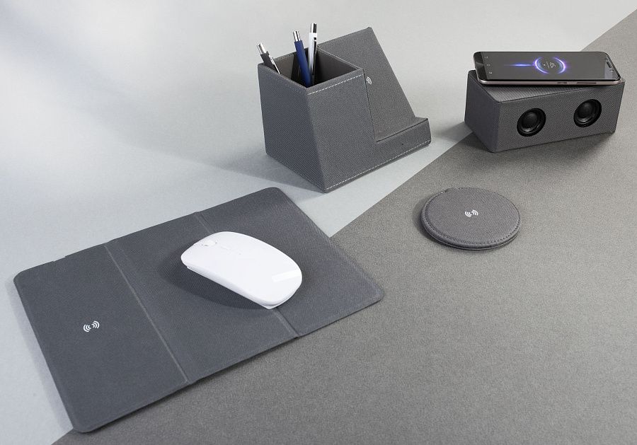 Именно для таких людей мы предлагаем современный настольный аксессуар – коврик-трансформер для мыши с функцией беспроводной зарядки, изготовленный из переработанного пластика (RPET). Коврик легко трансформируется в настольную подставку для более удобного просмотра фото/видео на экране смартфона (функция беспроводной зарядки сохраняется).
