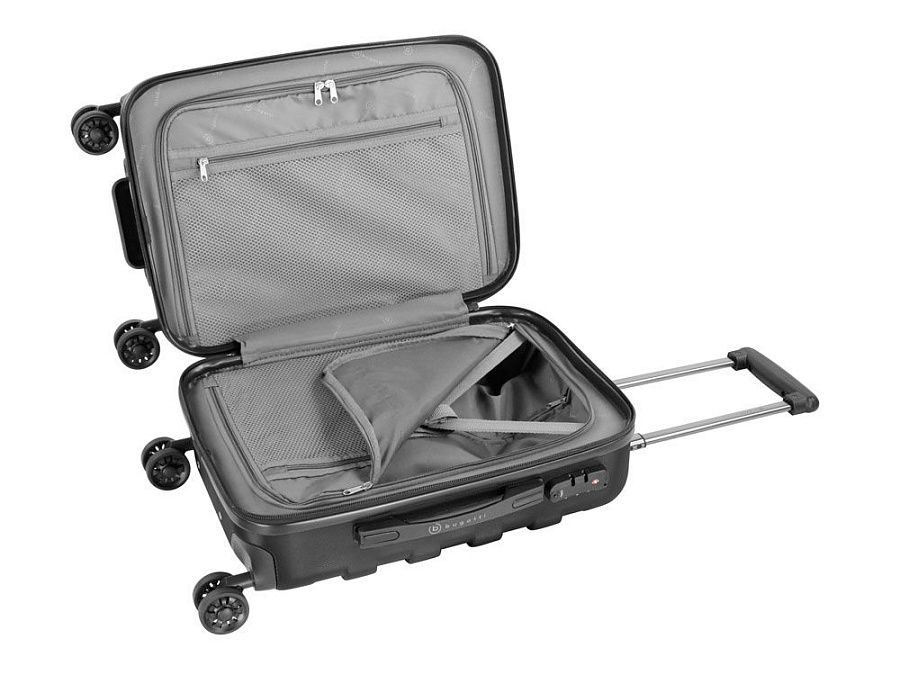 Внешняя организация: телескопическая ручка, кодовый замок TSA, 4 двойных колеса, боковая ручка, ручка на дне