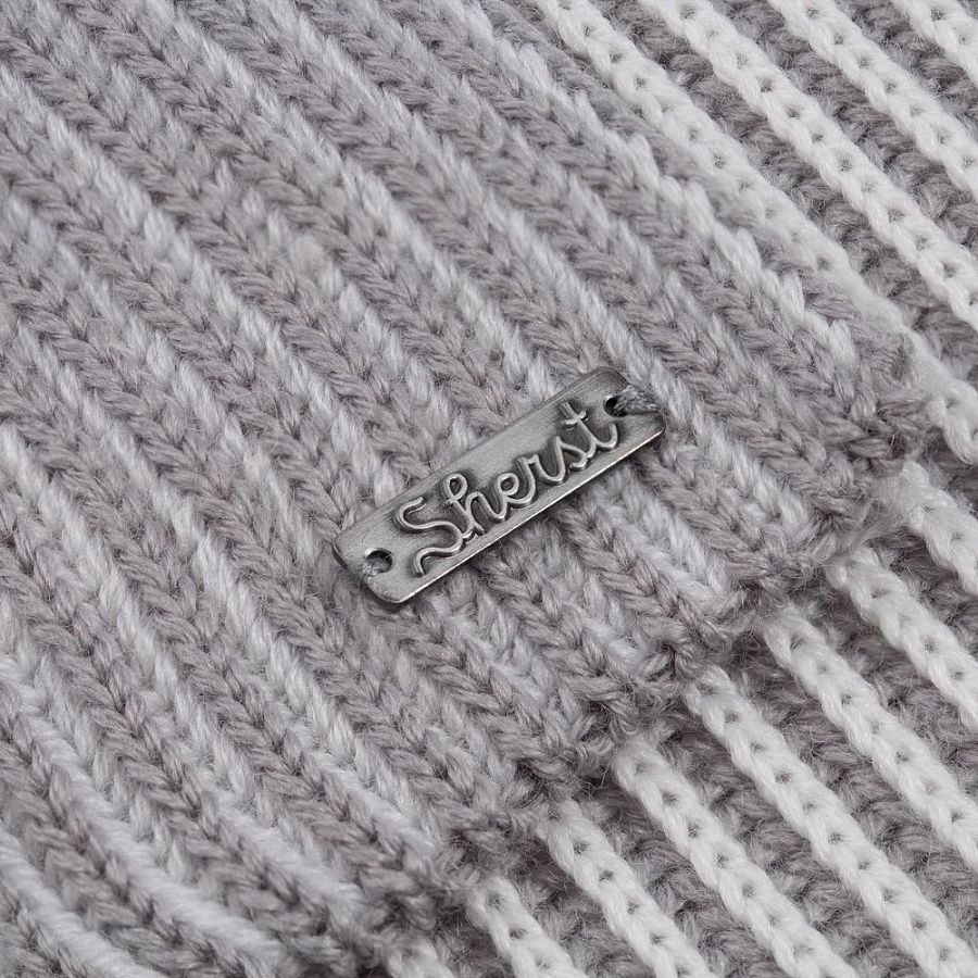 Металлический шильд с названием бренда расположен у заднего шва шапки. Это оставляет место спереди для пришива лейбла или шильдика с логотипом заказчика.