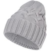 Однослойная шапка фактурной вязки с объемными косами и рельефным отворотом.