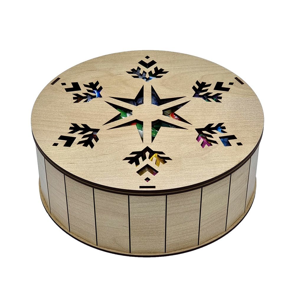 Декоративная шкатулка — это изысканная упаковка из дерева, украшенная праздничными элементами. С её элегантным дизайном и вниманием к деталям, она прекрасно подходит для хранения подарков, украшений или сладостей. Создаёт атмосферу праздника и тепла, добавляя нотку утончённости в сюрпризы и подарки.