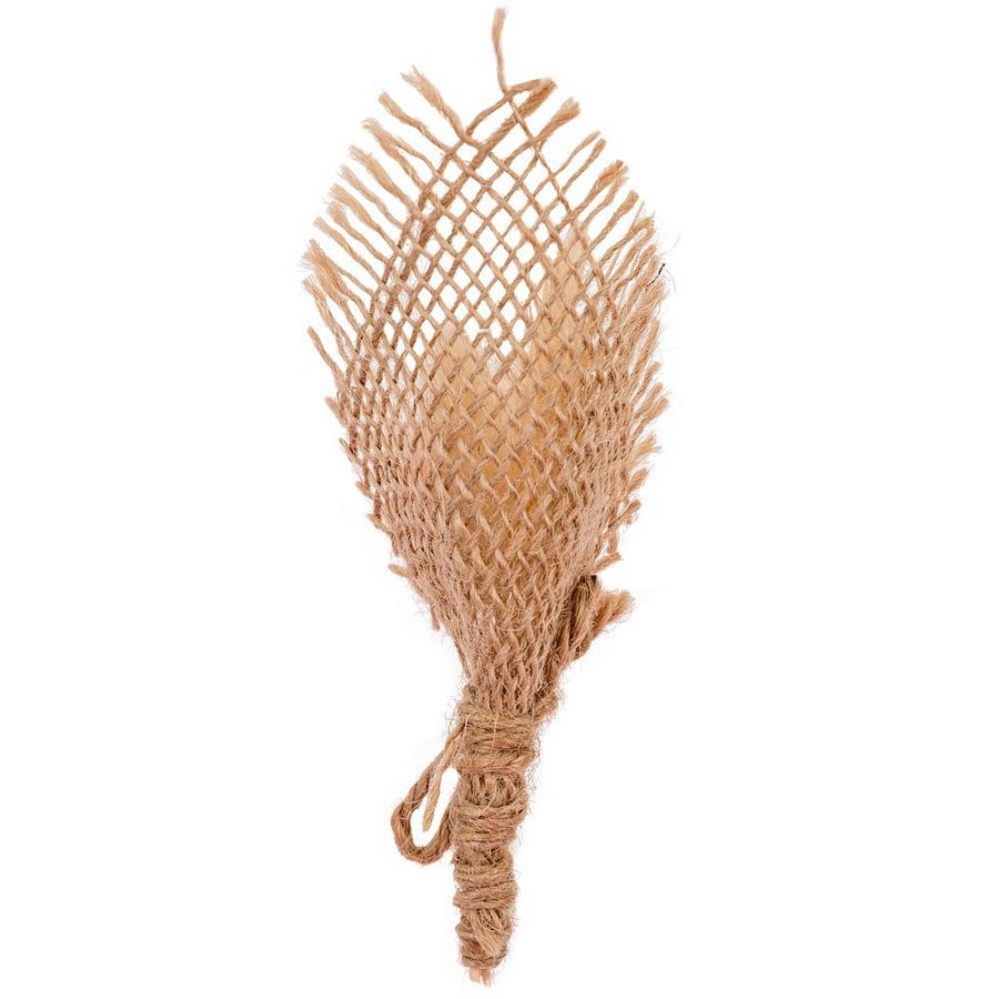 Декоративный букет из 3 веточек ларгуса, 2 выбеленных колосков обернут в джутовую мешковину и перевязан джутовым шпагатом.
