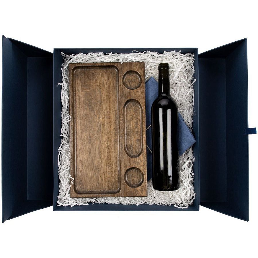 Подарочная коробка выполнена из переплетного картона, кашированного дизайнерской бумагой Malmero, с двумя створками на магнитах.
