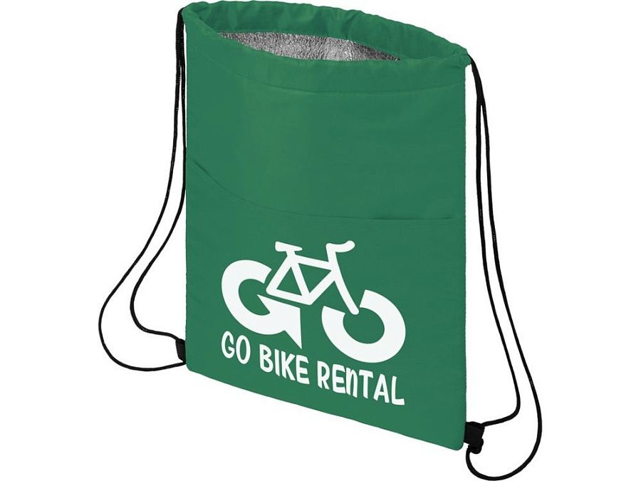 Сумка-холодильник затягивается на шнурок черного цвета. С открытым передним карманом. Вмещает 12 банок. Прочность до 5 кг.