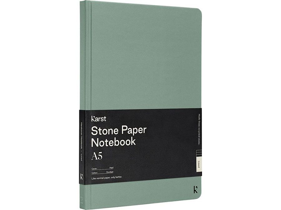 Блокнот в твердом переплете Karst® формата A5 является хитом продаж и любимцем публики. Гладкая поверхность страниц и плоский переплет обеспечивают достаточно удобства и пространства для записи ваших заметок и идей. Имеет эластичный ремешок, позволяющий держать блокнот закрытым, 144 водонепроницаемые и стойкие к разрыву страницы с линовкой, расширяемый задний карман для хранения и закладку с запаянным кончиком и закругленными углами.