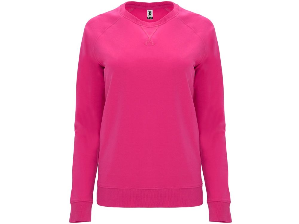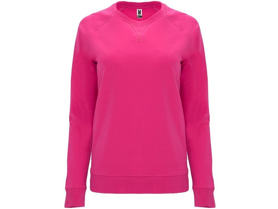 Свитшот с рукавом реглан из хлопкового футера без начеса. Манжеты по рукавами низу изделия из риба 2х1. Впереди треугольная деталь с декоративной отстрочкой .Круглый вырез горловины дополнительно усилен тесьмой.