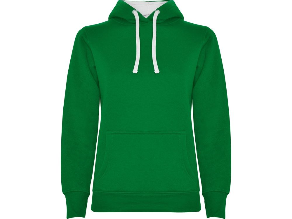 Худи с капюшоном и шнурками. Отделка горловины спинки внутри тесьмой, Риб 1х1 по низу изделия и манжетам. Карман кенгуру. На манжетах вырез под большой палец