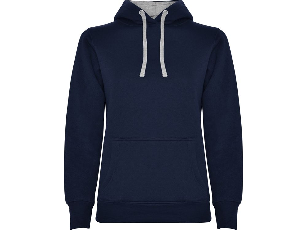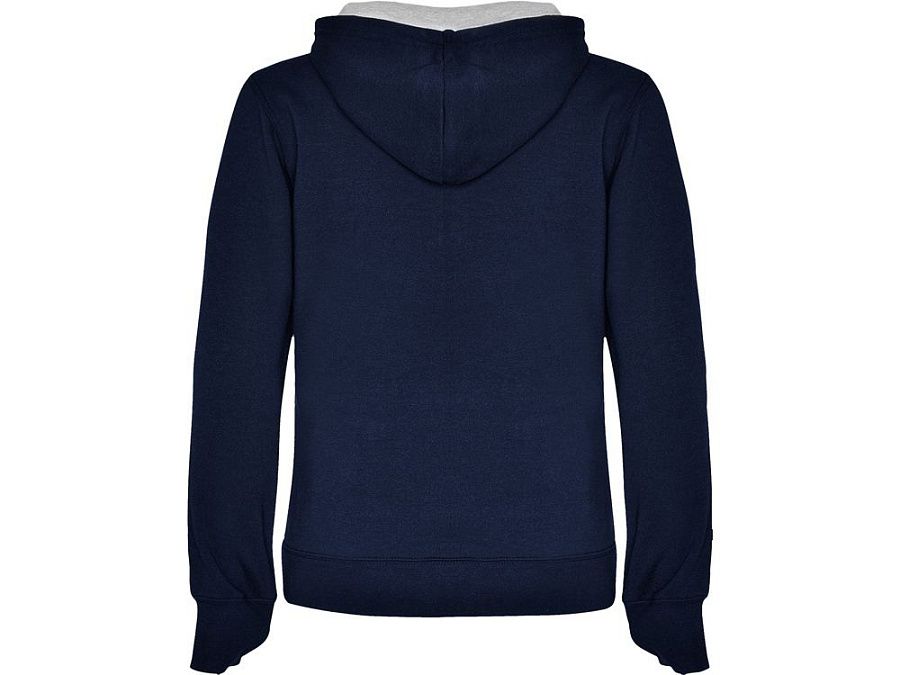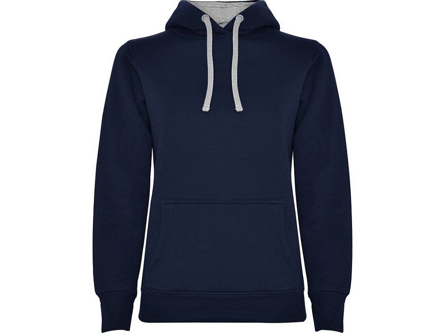 Худи с капюшоном и шнурками. Отделка горловины спинки внутри тесьмой, Риб 1х1 по низу изделия и манжетам. Карман кенгуру. На манжетах вырез под большой палец