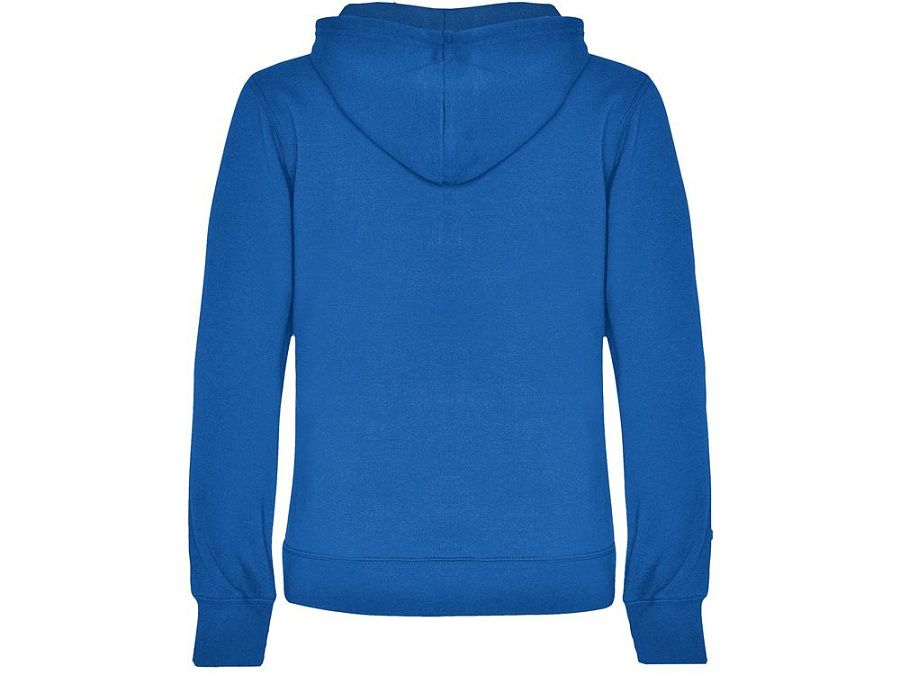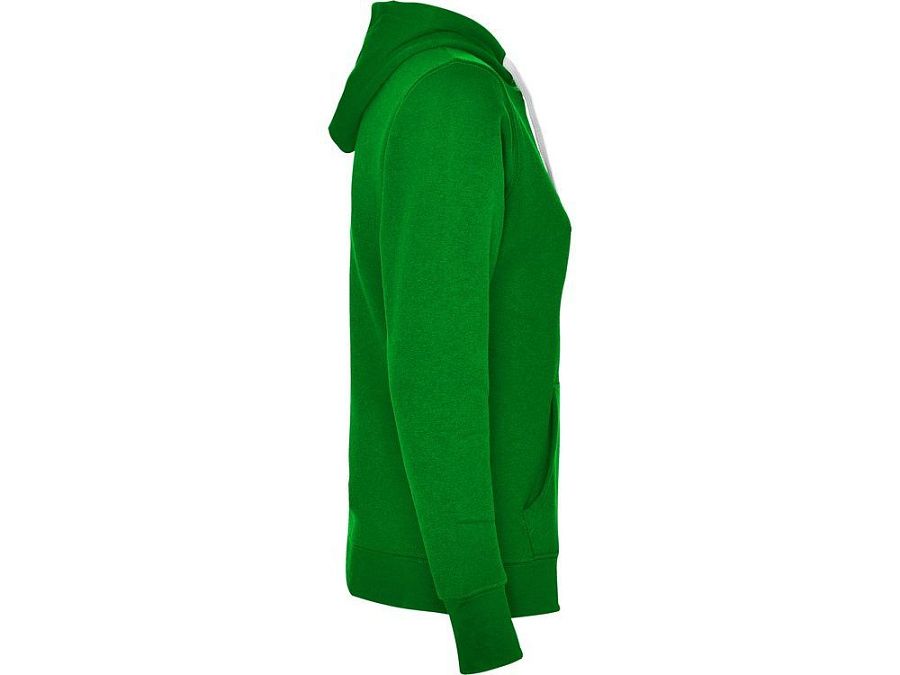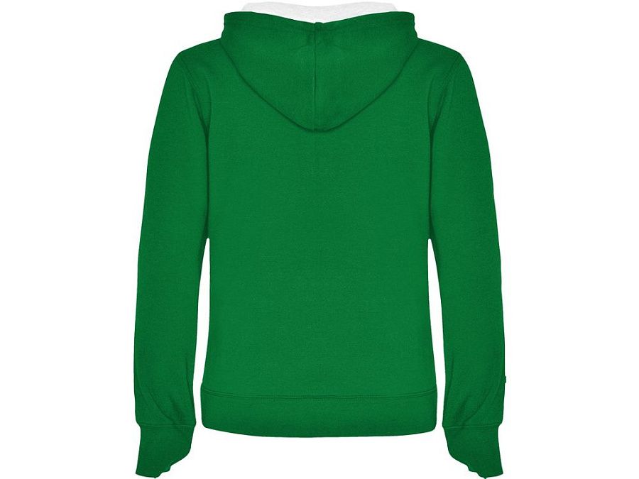 Худи с капюшоном и шнурками. Отделка горловины спинки внутри тесьмой, Риб 1х1 по низу изделия и манжетам. Карман кенгуру. На манжетах вырез под большой палец
