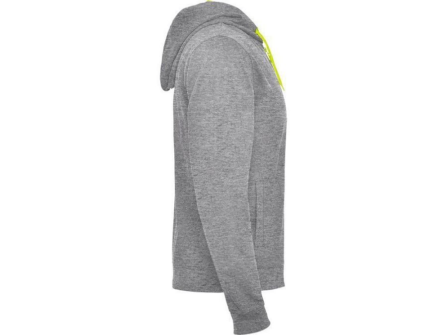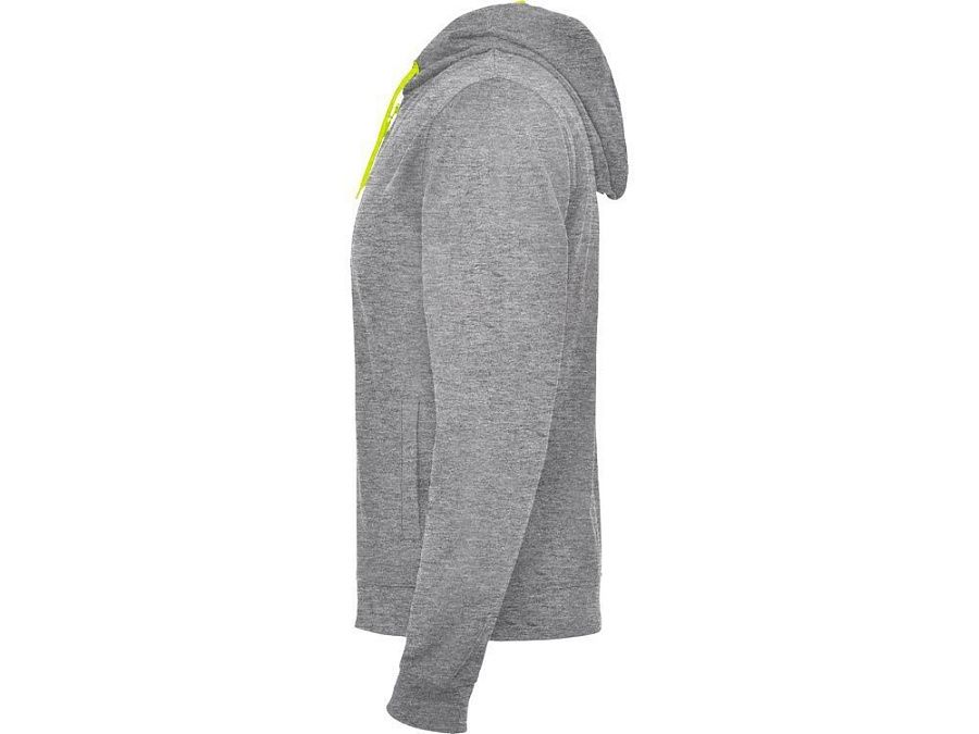 Толстовка на молнии из френч терри без начеса с деталями неонового цвета. Центральная молния с контрастным пуллером. Подкладка капюшона из микроперфорированного полиэстера контрастного неонового цвета. Шнур капюшона и айлетсы контрастного неонового цвета. Риб 1х1 на манжетах и внизу изделия. Два боковых кармана с широкой листочкой. Укрепляющая строчка внутри горловины.