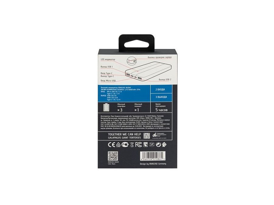 Внешний аккумулятор VA2041, 10000 mAh, цвет: черный, артикул 94343