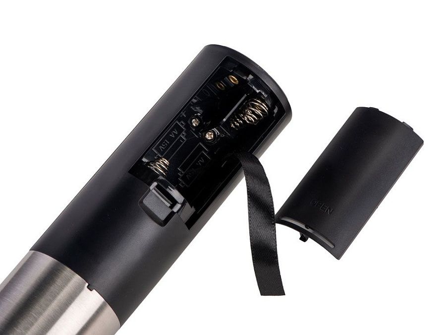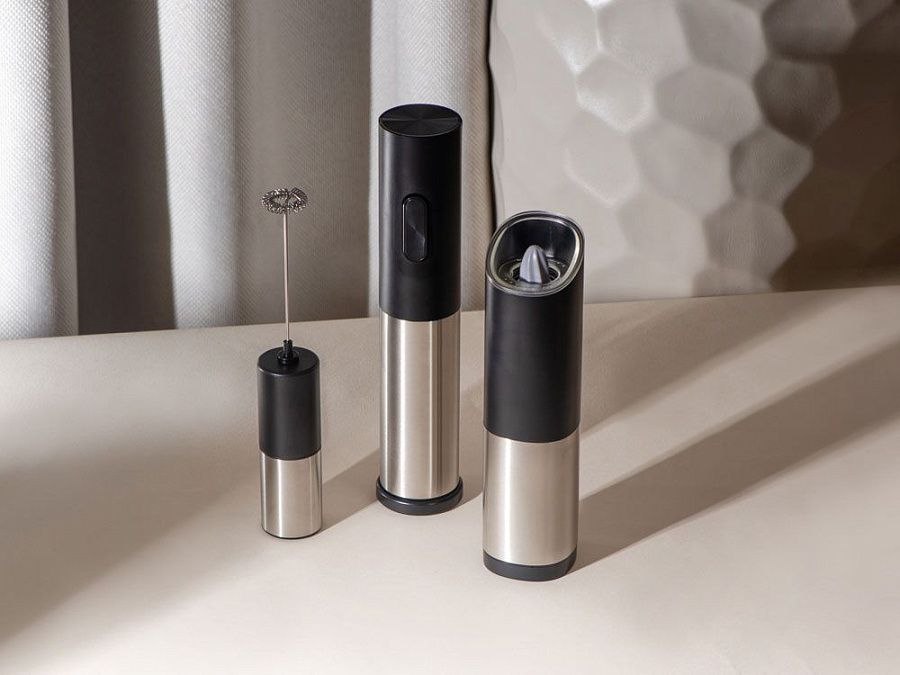 Электрический штопор «RIOJA» бренда Master of Wine — прекрасный подарок любителю вина: эта модель поставляется в элегантной упаковке в комплекте с подставкой, которая также может выступать в роли ножа для фольги. Благодаря устойчивой и функциональной подставке штопор всегда будет под рукой, а внешний вид «Rioja» станет настоящим украшением барной стойки или кухни.