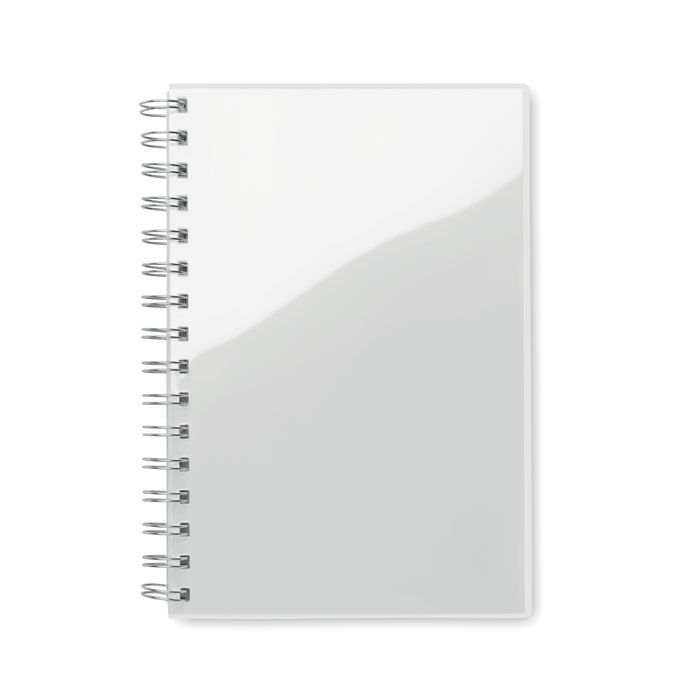 Блокнот формата A5 на спирали в обложке из переработанного пластика (RPET). 80 линованных страниц.