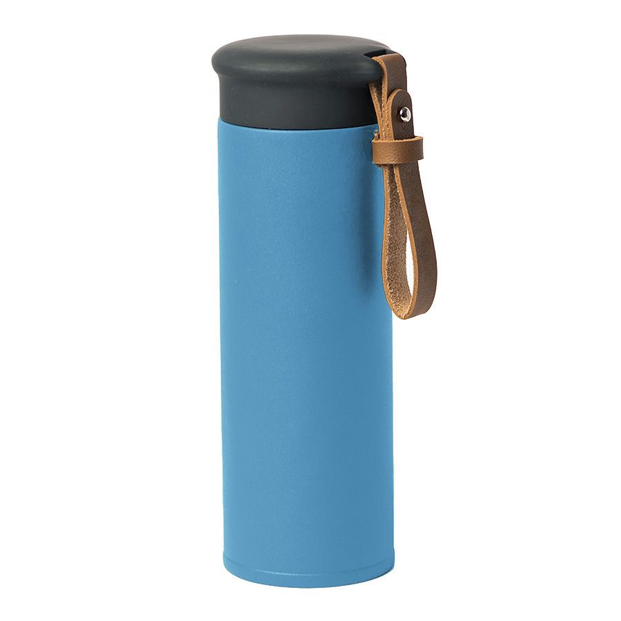 Вакуумный термос STRIPE с двойными стальными стенкамиСтильный матовый корпус термоса из нержавеющей стали (марка 304)Удобный ремешок из искусственной кожи, подходит для персонализацииГерметичная крышка с покрытием soft-touch не даст напитку пролитьсяСохраняет температуру жидкости до 12 часов в зависимости от температуры окружающей среды.Цвет близкий к Pantone 299CИндивидуальная упаковка из крафтового картона