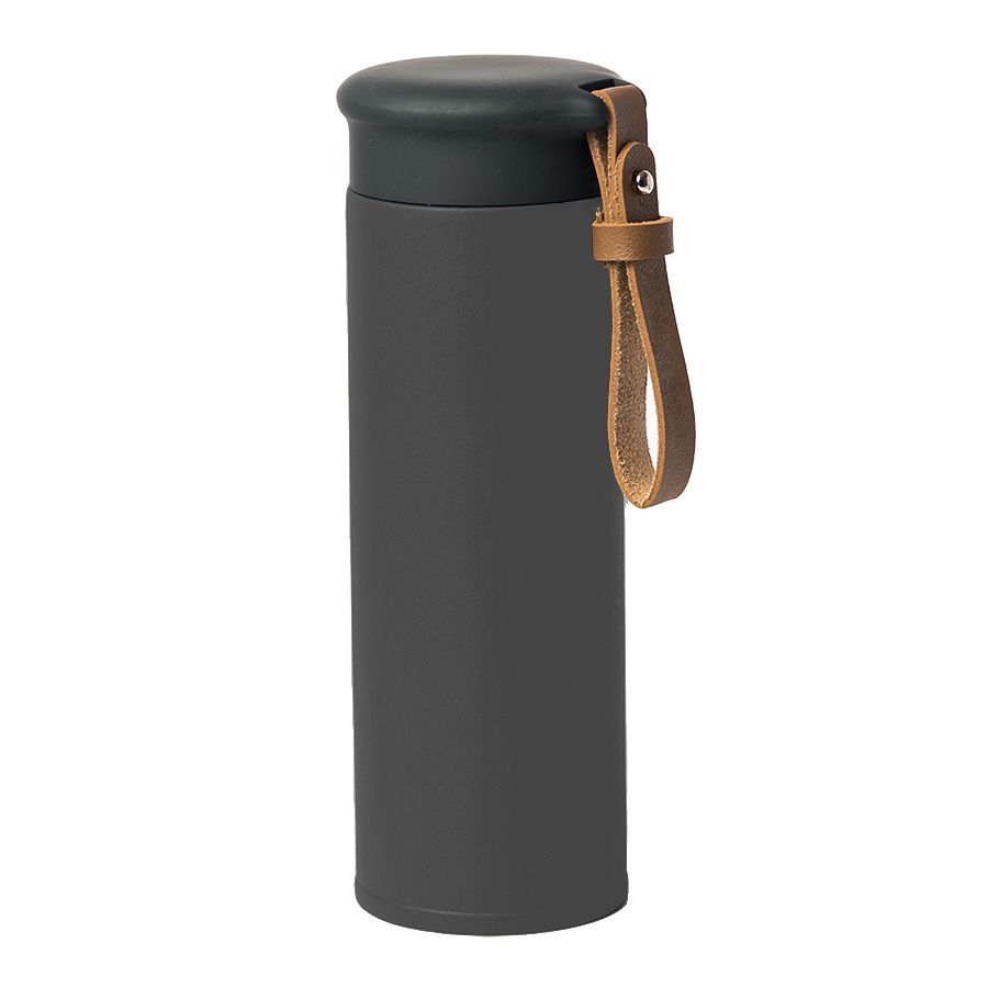 Вакуумный термос STRIPE с двойными стальными стенкамиСтильный матовый корпус термоса из нержавеющей стали (марка 304)Удобный ремешок из искусственной кожи, подходит для персонализацииГерметичная крышка с покрытием soft-touch не даст напитку пролитьсяСохраняет температуру жидкости до 12 часов в зависимости от температуры окружающей среды.Цвет близкий к Pantone 425CИндивидуальная упаковка из крафтового картона