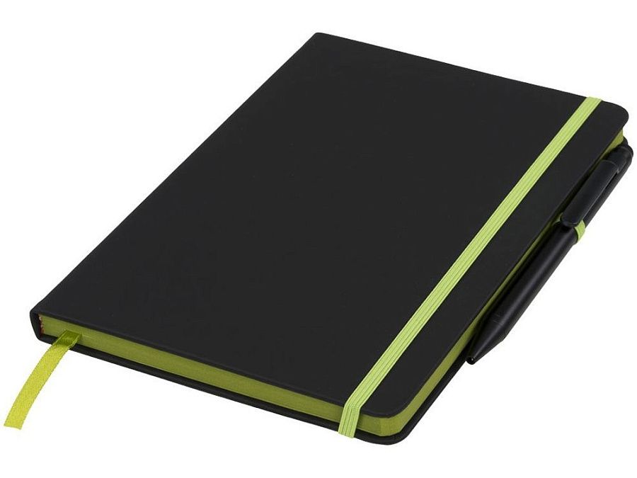 Блокнот Noir Edge среднего размера. Современный и стильный черный блокнот с мягкой на ощупь обложкой. Цветной край и цветные маркеры страниц, застежка-держатель для ручки. Предлагается с черной шариковой ручкой-стилусом. Блокнот содержит 96 листов линованной бумаги (70 г/м²) кремового цвета. ПУ.