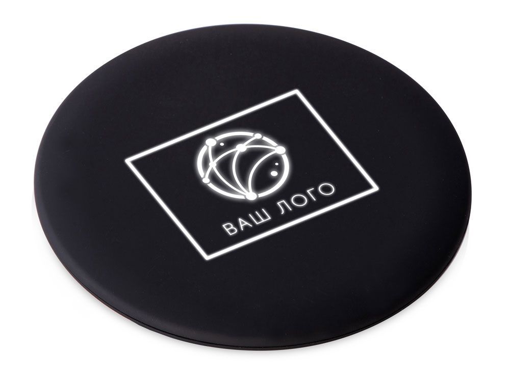 Moon spot — беспроводное устройство для зарядки в бархатистом корпусе софт-тач от Evolt. При гравировке верхний слой снимается, открывая подсветку — на бархатистом черном фоне светящиеся белым контуры выглядят особенно ярко и контрастно.