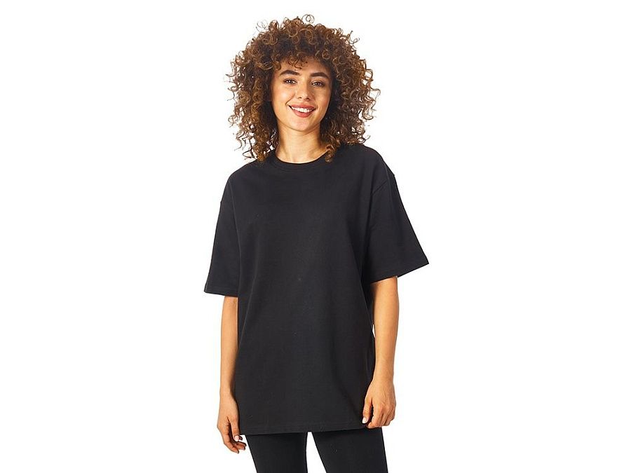 Футболка выполнена из хлопкового френч терри с петельками на изнаночной стороне. Горловина обработана рибом 2х2 и дополнительно усилена тесьмой-елочкой с внутренней стороны спинки. Гладкая поверхность полотна позволяет идеально нанести изображение. Футболка расслабленного силуэта для прогулок и других видов приятного времяпрепровождения