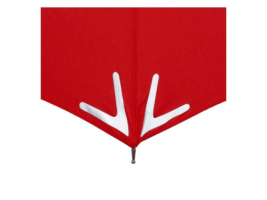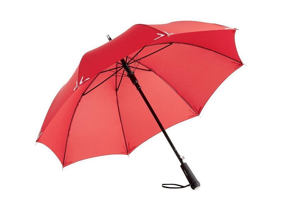 Полуавтоматический зонт-трость со светоотражающими элементами на куполе из запатентованного материала 3M™ Scotchlite™ обеспечит дополнительную защиту в темное время суток. В ручку встроен LED фонарик, который работает в двух режимах - постоянный белый свет и мерцающий красный. Батарейка в комплекте.