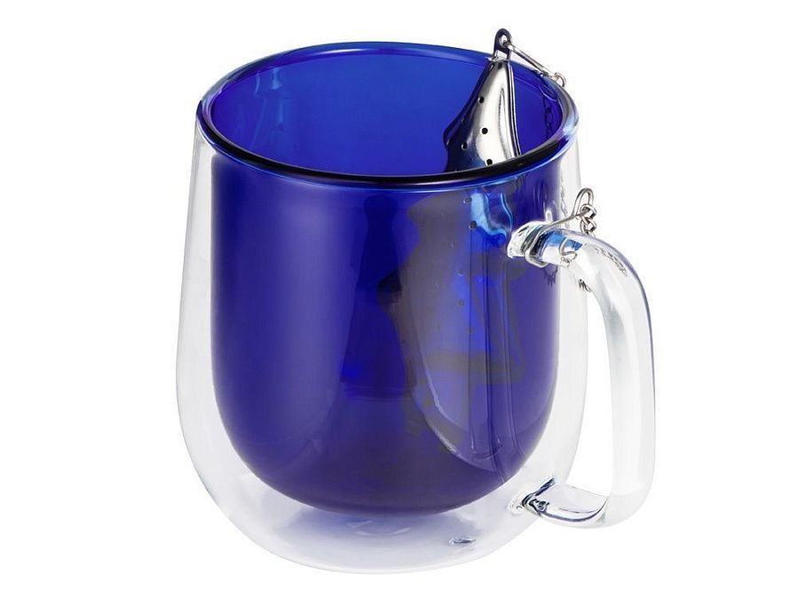 Кружка с внутренней цветной колбой дополнена ситечком, которое позволит сразу же заварить чай. Удобная ручка и двойные стенки не дают обжечь ладони во время чаепития.