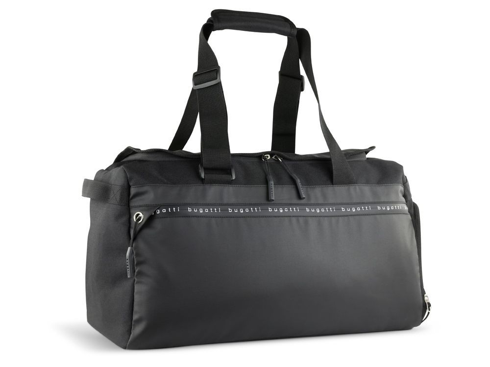 Функциональная организация: основное отделение на молнии с карманом на молнии, боковое отделение для обуви на молнии, передний карман на молнии, 2 боковые ручки, ремень для крепления к телескопической ручке чемодана, 2 регулируемые ручки, которые можно использовать как плечевые ремни (до 75 см).