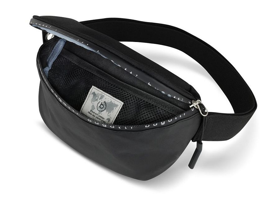Функциональная организация: основное отделение на молнии с сетчатым карманом, регулируемый поясной ремень (до 120 см).