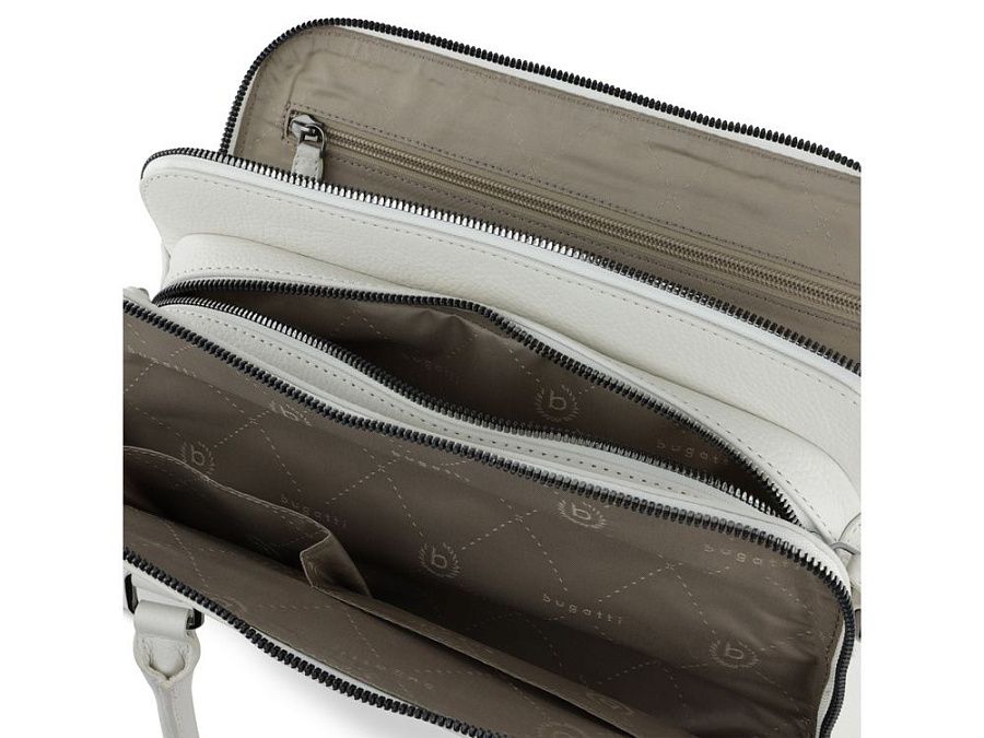 Функциональная организация: 3 отделения на молнии с карманом на молнии и 2 открытыми карманами, 2 ручки, съемный регулируемый плечевой ремень (до 130 см).