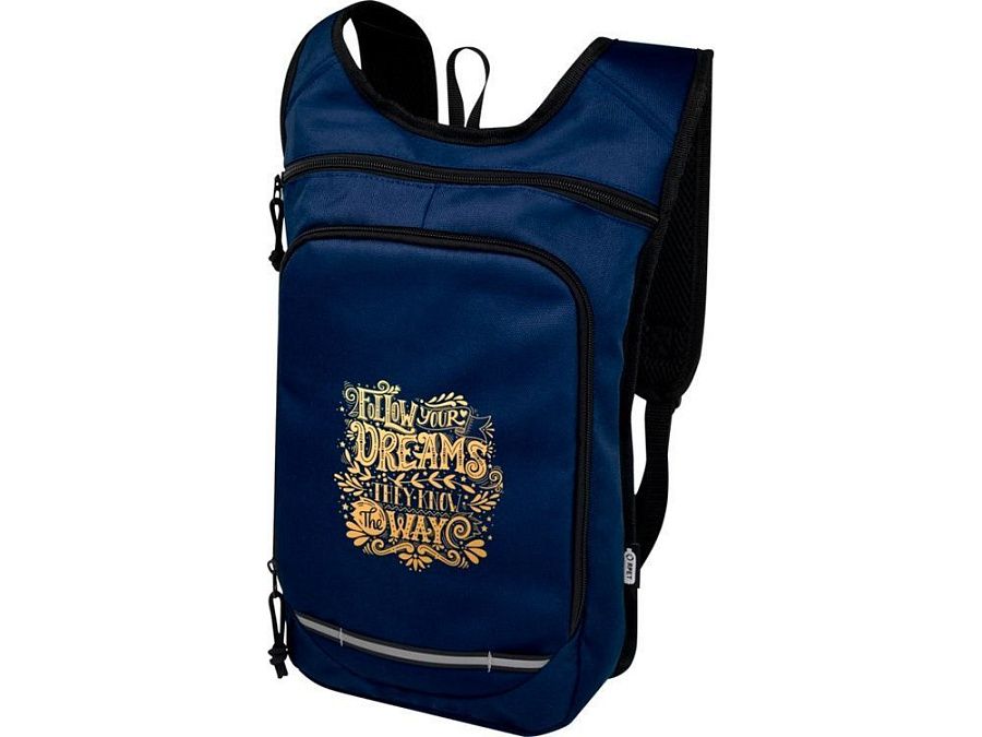 Рюкзак Trails изготовлен из 100% переработанной по стандарту GRS водоотталкивающей ткани и имеет один передний карман на молнии и одно основное отделение на молнии, а также отделение для гидросистемы. Светоотражающие полосы для видимости и сетчатая задняя часть для комфорта при переноске делает его отличным экологичным выбором для активного отдыха.