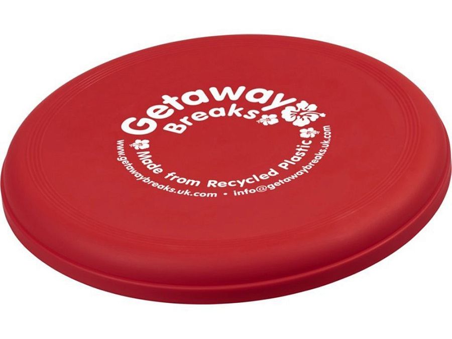 Фрисби, изготовленное из 100% переработанной пластмассы, сочетает в себе забавную идею для рекламы и экологичность. Сделано в Соединенном Королевстве. Отвечает стандарту EN72.