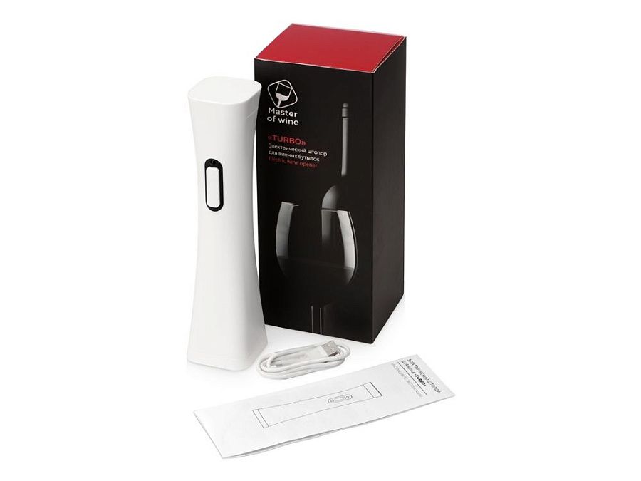 В комплектации: штопор, нож для обрезания фольги, инструкция по использованию, USB кабель.