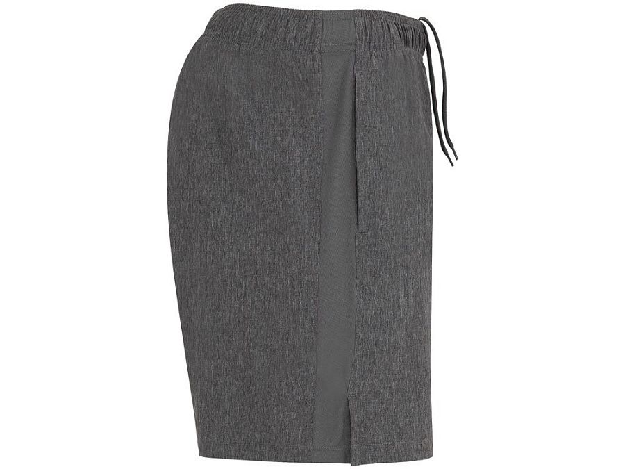 Спортивные шорты из двух видов полотен с подкладкой - трусами. Эластичный пояс с контрастным внутренним шнурком. Лампасы по бокам из дышащей ткани. Два карманы по бокам. Асимметричные боковые разрезы внизу.