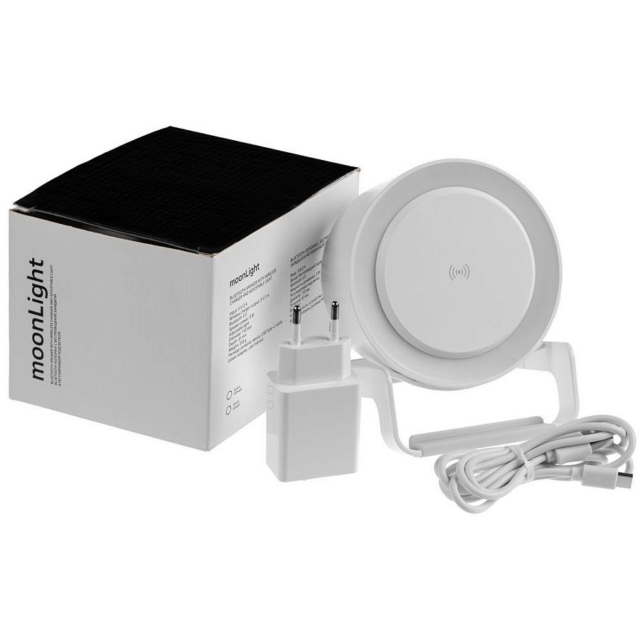 Устройство moonLight — это настольная лампа с bluetooth-колонкой и беспроводной зарядкой, которая также может служить ночником на прикроватном столике.