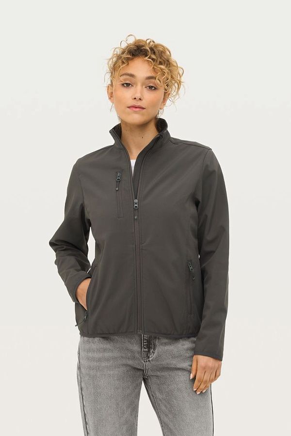 Женская водонепроницаемая и ветрозащитная куртка на молнии из трехслойного софтшелла с флисовой изнанкой. Выполнена из переработанного полиэстера.