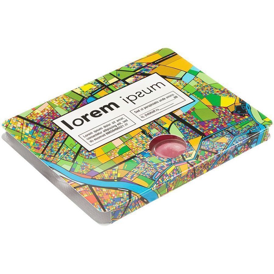 В стоимость изделия входит полноцветная печать и офсетный лак на шубере.Леденцы со вкусом на выбор, 10 шт. по 3,2 г.