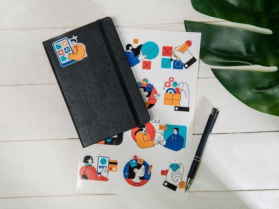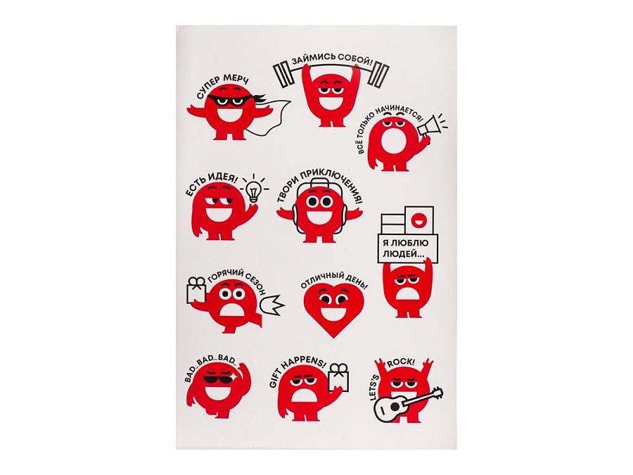 Лист с наклейками формата А5, которые можно использовать для украшения ноутбуков, планшетов, телефонов, дневников, скетчбуков и многого другого.